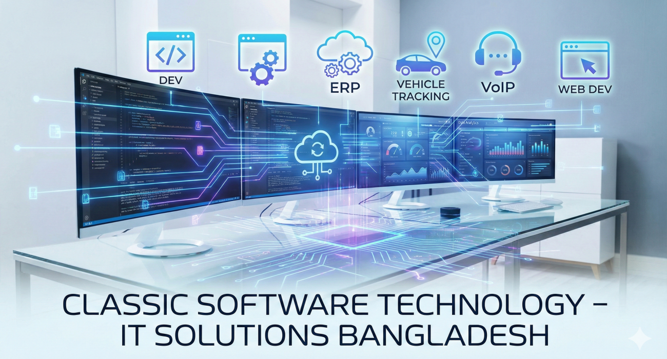 ক্লাসিক সফটওয়্যার টেকনোলজি: বাংলাদেশের শীর্ষস্থানীয় আইটি সল্যুশন প্রদানকারী প্রতিষ্ঠান আমাদের সম্পর্কে ক্লাসিক সফটওয়্যার টেকনোলজি (CST) একটি নির্ভরযোগ্য সফটওয়্যার ও আইটি সল্যুশন কোম্পানি, যা বাংলাদেশসহ আন্তর্জাতিক ক্লায়েন্টদের জন্য নিরাপদ, স্কেলেবল এবং উচ্চমানের সিস্টেম তৈরি করে থাকে। ডিজিটাল ট্রান্সফরমেশনকে সহজ করতে আমরা আধুনিক প্রযুক্তি ভিত্তিক সমাধান প্রদান করি। আমাদের মূল সেবাসমূহ ১. [...]